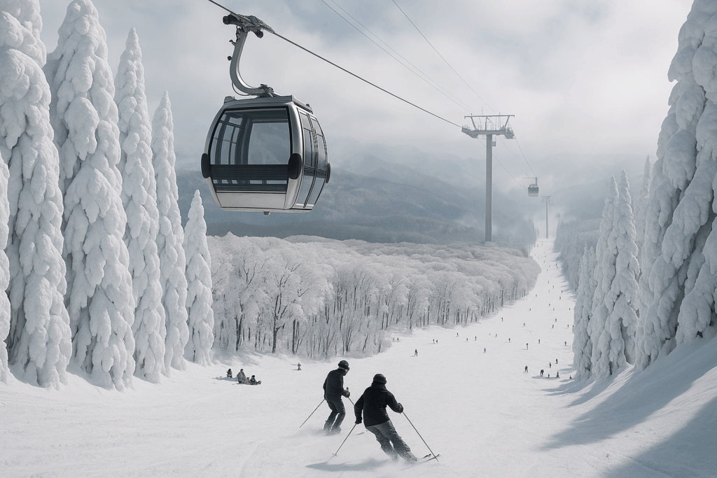 特徴: 秋田内陸部・森吉山の山腹に広がる市営スキー場で、日本三大樹氷観賞地の一つとして知られる森吉山の樹氷(スノーモンスター)が最大の見どころです。6人乗りゴンドラで標高約1,167mの山頂駅まで一気に上がると、冬期(1月~3月)には真っ白な樹氷群が間近にそびえ、晴れた日には遠くの山々まで望む大パノラマが楽しめます。ゴンドラでの空中散歩と樹氷観賞は滑走目的でない観光客にも人気で、上質な積雪と3.5kmにも及ぶロングコースを活かしたダイナミックな滑りも魅力です。