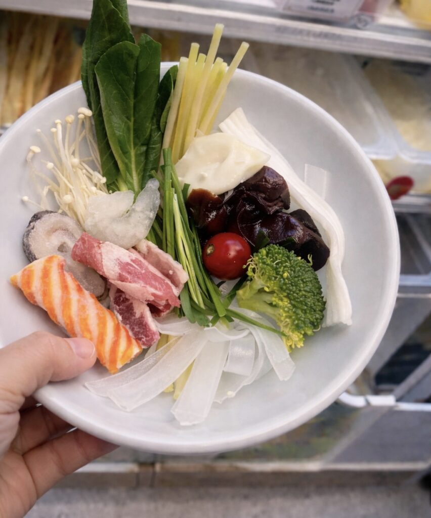 福恩麻辣湯は、スープや辛さを選ぶだけでなく、 ショーケースに並ぶ50種類以上の具材や麺の中から「好きなものを好きな量だけ」選び、 量り売りでオーダーできるスタイルです。